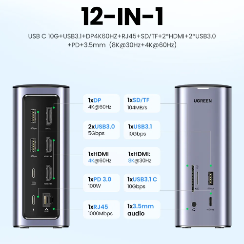 The UGREEN USB 3.0 5-in-1 Hub – 60554 is the perfect solution for expanding your computer’s connectivity. With three USB 3.0 ports and a Gigabit Ethernet port, it enables fast data transfer, stable network access, and easy device connections in one compact hub. Designed for portability, it’s great for professionals and students who need reliable connectivity anywhere.